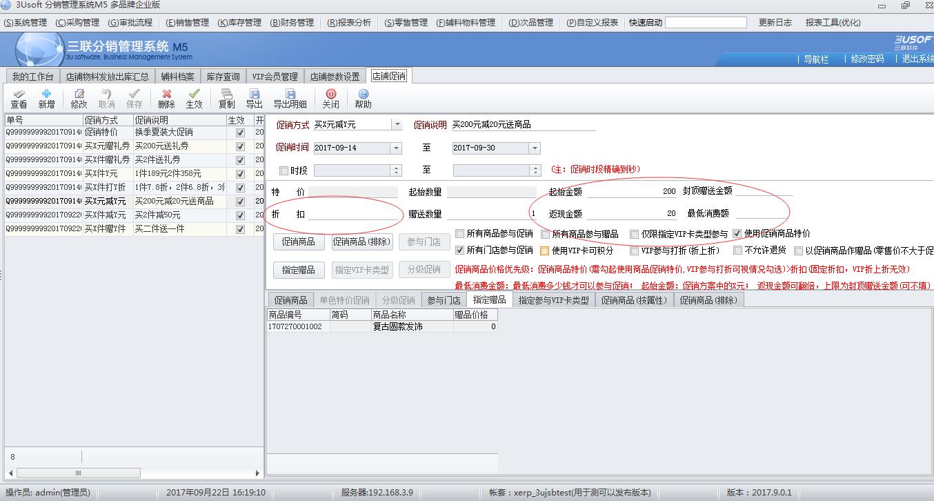 注:1.该促销方案中,设置促销商品特价无效,取促销方案中的特价。