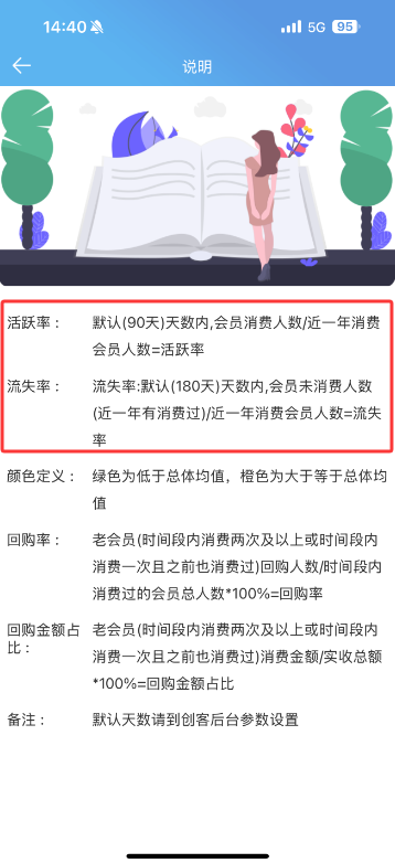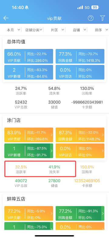 VIP贡献表“活跃率”和“流失率”字段公式算法调整,活跃率=默认(90天)天数内会员消费人数/近一年消费会员人数,流失率=默认(180天内)天数内会员未消费人数(近一年有消费过)/近一年消费会员人数