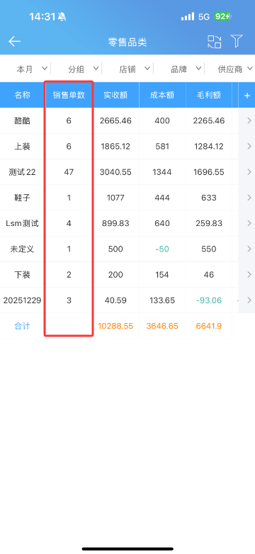 5、零售品类表格模式增加销售单数