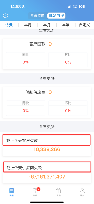 首页批发简报页面字段名称修改,“截止今天应收款”修改为“截止今天客户欠款”,“截止今天应付款”修改为“截止今天供应商欠款”