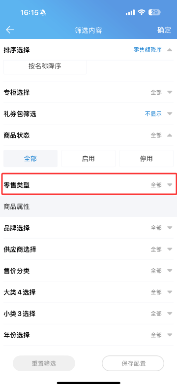 十一、店铺业绩/导购维度/零售品类添加零售类型筛选