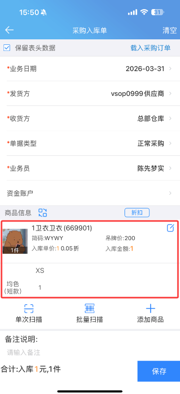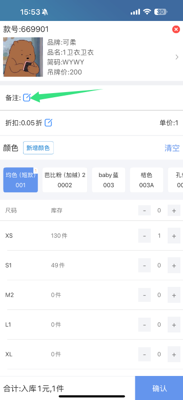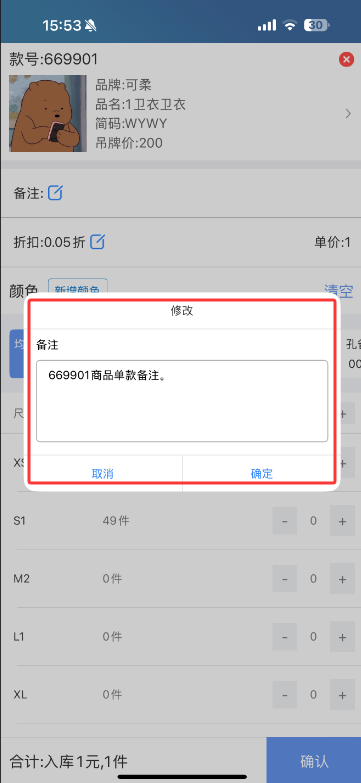 采购入库单/采购在途通知/采购退货单/采购退货通知这四个模块开单添加支持录入单款商品备注,编辑单据详情时也可以对单款商品备注进行修改保存