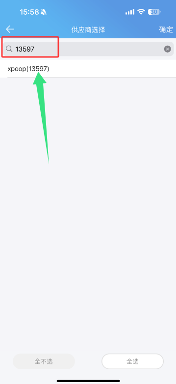 所有模块高级筛选“供应商选择”搜索时添加支持按供应商编号搜索,比如“xpoop”供应商的编号为13597,现在直接搜索“13597”也能搜索出该供应商